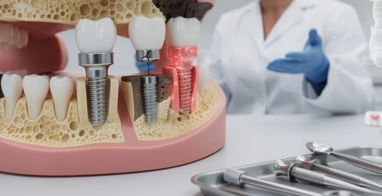 Malgré leurs excellents taux de succès, les implants dentaires en titane ne sont pas exempts de complications. Celles‑ci peuvent survenir précocement, lors de la phase d’ostéointégration, ou plus tardivement, parfois plusieurs années après la mise en fonction. Les principales complications concernent les tissus entourant l’implant (gencive et os), mais aussi, plus rarement, le matériau lui‑même (fracture) ou des réactions d’hypersensibilité au titane. Connaître ces risques vous permet de mieux comprendre l’importance du suivi régulier et d’une hygiène irréprochable pour protéger vos implants.